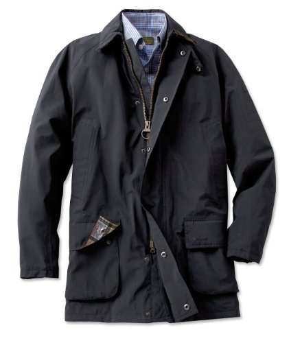An updated take on the traditional Bristol jacket, using modern technical Gore-Tex fabric. This men's waterproof travel jacket offers a classic rainwear style with clean lines, excellent for traveling. Point collar with snap throat latch, front zipper closure with storm flap, and two front bellows pockets with flaps. Lined in polyester mesh for optimum breathability and air circulation. Barbour tartan lining in sleeves. Men's waterproof travel jacket is about 33" long. Polyester. Sponge clean. Imported. Sizes: S(34-36), M(38-40), L(42-44), XL(46-48), XXL(50-52).